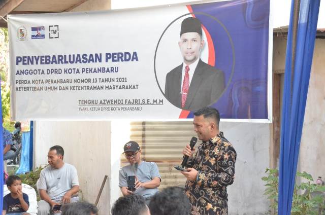 PEKANBARU, TanahIndonesia.id - Wakil Ketua DPRD Pekanbaru Tengku Azwendi Fajri menyelenggarakan Penyebarluasan Perda di Jalan Kusuma Kelurahan Simpang Tiga Kecamatan Bukit Raya pada Kamis (27/11). Agenda ini dihadiri segenap masyarakat setempat beserta perangkat RT RW.