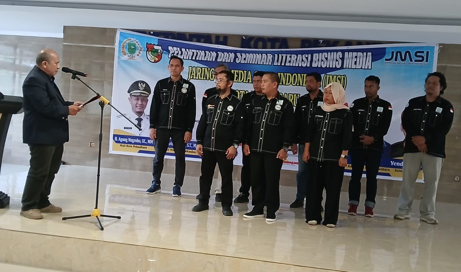 Pekanbaru, TanahIndonesia.id - Pengurus Jaringan Media Siber Indonesia (JMSI) Kota Pekanbaru periode 2025–2030 resmi dilantik di Aula Mal Pelayanan Publik (MPP) Pekanbaru, Kamis (11/12/2025). Pelantikan ini turut dirangkaikan dengan seminar bertema “Mengoptimalkan Literasi Bisnis Media untuk Meningkatkan Daya Saing”, yang dinilai sangat relevan dengan kebutuhan industri media saat ini.